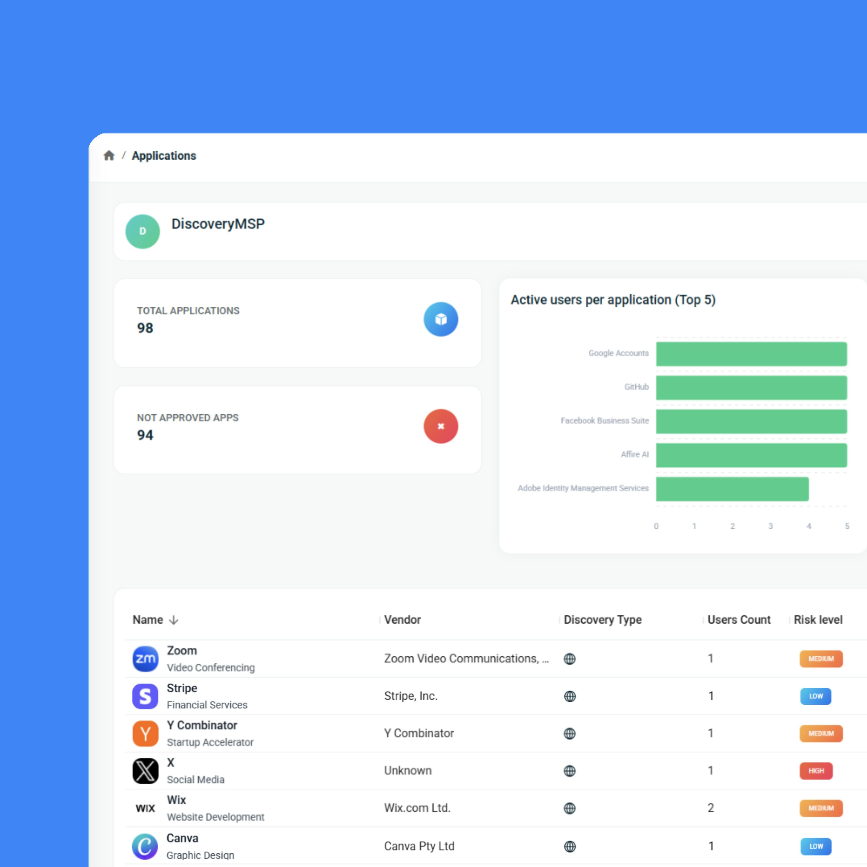 Internal IT teams struggle with SaaS visibility and compliance. Resell powerful SaaS Discovery and Shadow IT detection tools that help them regain control, reduce security risks, and stay compliant with regulations like DORA and NIS2.