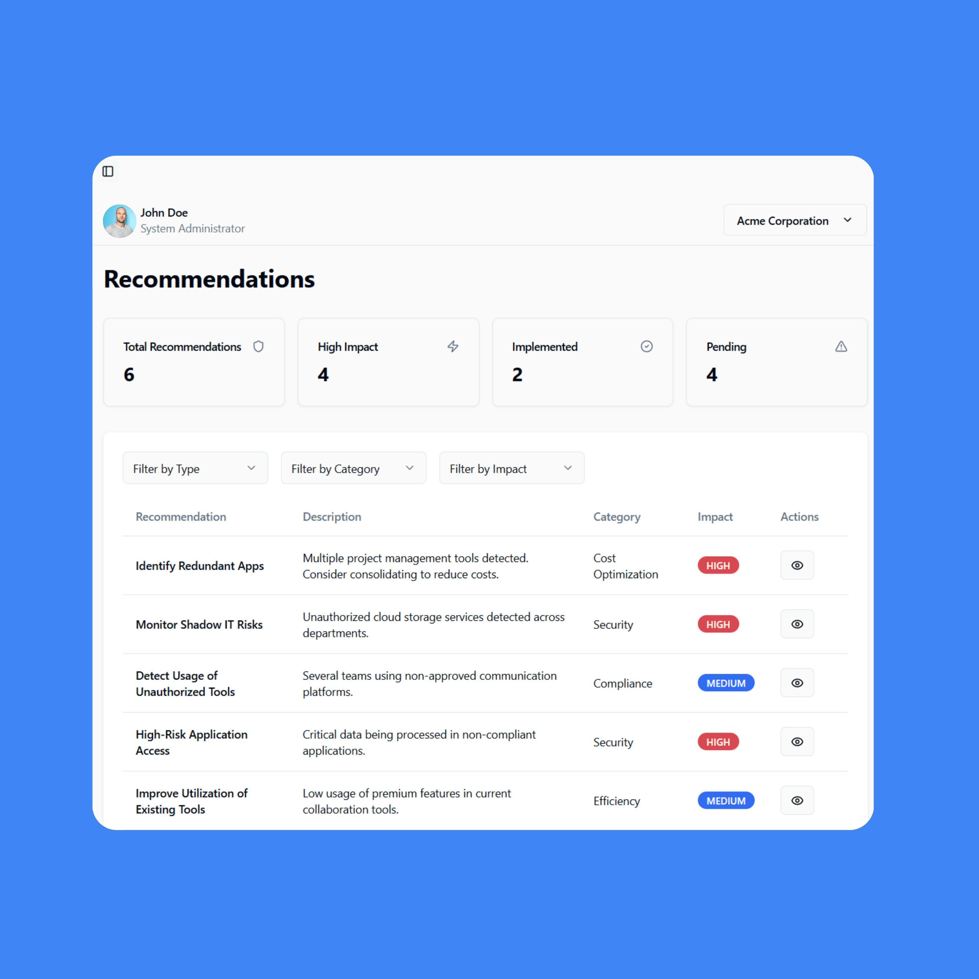 Become an early contributor to the platform redefining SaaS and shadow IT visibility. Help guide product development while gaining early insights and value.